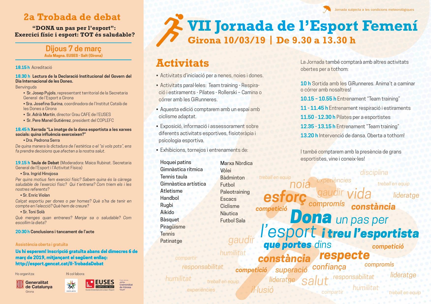 La Jornada és una plataforma per trencar estereotips i difondre la pràctica esportiva, per donar a conèixer grans esportistes i petites esportistes, per reconèixer l’esforç de la gent que dona suport a l’esport femení i per aconseguir unes condicions d’igualtat a l’hora d’accedir a la pràctica esportiva.